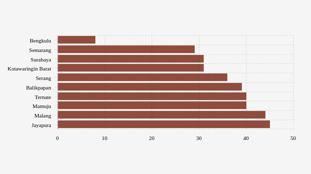 Bengkulu tercatat sebagai kota dengan kualitas udara paling bersih di Indonesia pada Selasa, 5 September 2023.