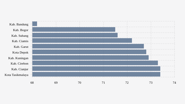 Kabupaten Bandung di urutan pertama. Sampai dengan kemarin, wilayah ini sudah menyelesaikan vaksinasi di angka 68,2 persen. Angka ini menjadi yang terendah dibandingkan 27 kabupaten/kota lainnya. Program vaksinasi di kabupaten ini rencananya dengan sasaran sebanyak 2,8 juta peserta. Di wilayah ini, rerata vaksinasi minggu lalu tercatat 13.782 peserta. Jumlah stok vaksin yang tersisa saat ini tercatat 336,35 ribu dosis.