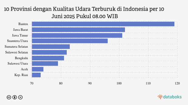 Berikut daftar 10 provinsi dengan indeks kualitas udara terburuk di Indonesia pada Selasa, 10 Juni 2025 pukul 08.00 WIB.