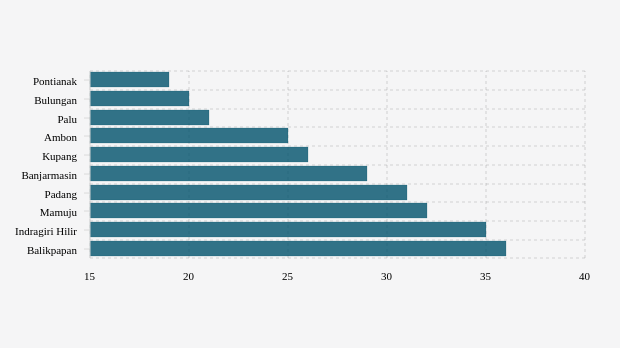 - Padang (Sumatera Barat): 31