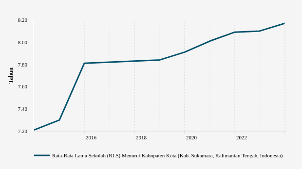 Rata-rata lama sekolah (RLS) penduduk berusia 25 tahun ke atas di Sukamara, Kalimantan Tengah mencapai 8,17 tahun pada 2023.