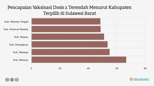 Pencapaian Vaksinasi Dosis 2 Terendah Menurut Kabupaten Terpilih di Sulawesi Barat
