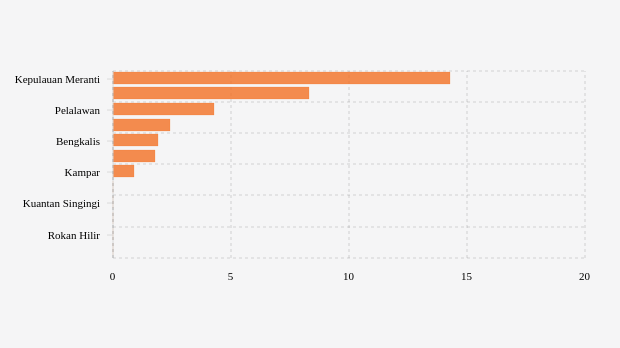 Kepulauan meranti adalah kabupaten di urutan pertama dengan positivity rate aglomerasi tujuh hari terakhir tertinggi sebesar 14,29 persen. Kondisi positivity rate aglomerasi tujuh hari terakhir di kabupaten ini terlihat belum membaik karena terjadi peningkatan dibandingkan pekan sebelumnya yang tercatat 7,14 persen.