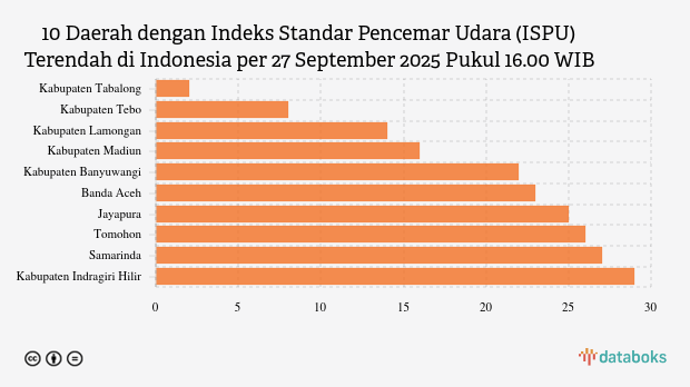 10 Daerah dengan Udara Sore Hari (27/9) Paling Bersih di Indonesia