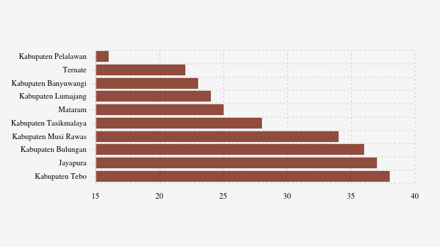 - Kabupaten Musi Rawas (Sumatera Selatan): 34