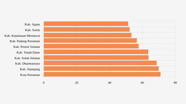 Kabupaten Agam di urutan pertama. Sampai dengan kemarin, untuk vaksinasi dosis 2 wilayah ini telah mencatatkan 51,15 persen. Angka ini menjadi yang terendah dibandingkan 19 kabupaten/kota lainnya. Sedangkan untuk pencapaian dosis 1, sampai dengan kemarin sudah tercapai 76,09 persen atau diikuti oleh 557,24 ribu peserta vaksin.