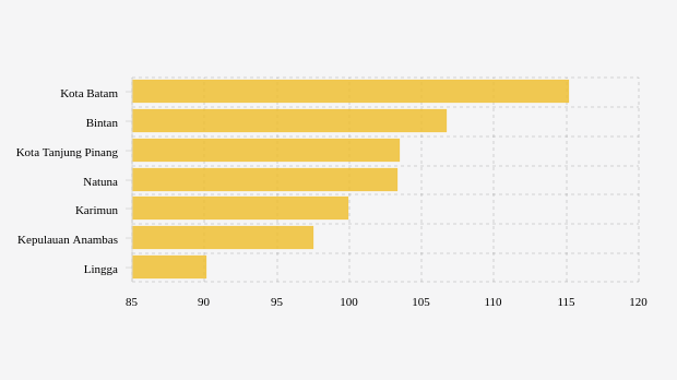 Kota batam berada di urutan pertama dengan capaian vaksinasi 1 tertinggi sebesar 115,2 persen. Kondisi capaian vaksinasi 1 di kota ini terlihat lebih baik dibandingkan pekan sebelumnya yang tercatat 114,86 persen.