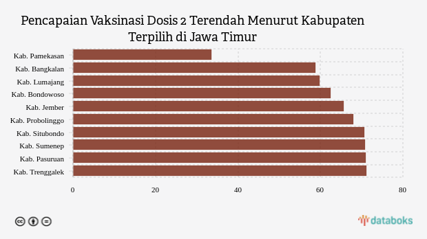 Pencapaian Vaksinasi Dosis 2 Terendah Menurut Kabupaten Terpilih di Jawa Timur
