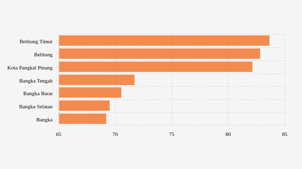 Belitung timur adalah kabupaten di urutan pertama dengan cakupan vaksinasi lengkap tertinggi sebesar 83,58 persen. Kondisi cakupan vaksinasi lengkap di kabupaten ini terlihat menurun dibandingkan pekan sebelumnya yang tercatat 83,61 persen.