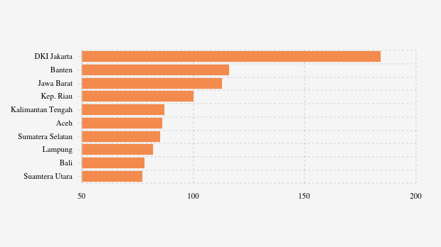 Berikut daftar 10 provinsi dengan indeks kualitas udara terburuk di Indonesia pada Rabu, 27 Agustus 2025 pukul 08.00 WIB.
