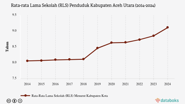 RLS tersebut menunjukkan rata-rata penduduk Aceh Utara hanya sekolah sampai jenjang kelas IX. RLS itu lebih baik dari rata-rata RLS nasional yang 8,85 tahun pada 2024.
