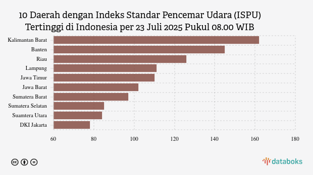 Berikut daftar 10 provinsi dengan indeks kualitas udara terburuk di Indonesia pada Rabu, 23 Juli 2025 pukul 08.00 WIB.