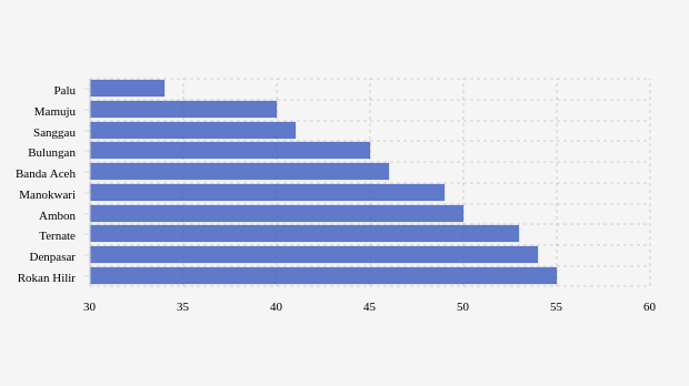 Pada waktu tersebut, kualitas udara Palu tergolong baik yang berarti kadar polutan di udara Palu sangat minim. Selanjutnya, Mamuju menempati posisi kedua dengan indeks kualitas udara 40. Berikutnya, ada Sanggau di posisi ketiga dengan indeks kualitas udara 41.