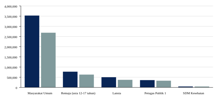 Vaksinasi ke masyarakat umum yang rentan ditargetkan sebanyak 4,62 juta jiwa. Pada dosis 1, vaksinasi dilaporkan telah diberikan sebanyak 3,53 juta jiwa (77,25 persen target). Sedangkan untuk vaksinasi dosis 2 baru tercapai 58,95 persen atau 2,69 juta jiwa.