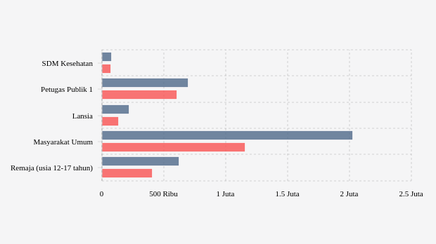 Vaksinasi ke masyarakat umum yang rentan ditargetkan sebanyak 4,57 juta jiwa. Pada dosis 1, vaksinasi dilaporkan telah diberikan sebanyak 2,02 juta jiwa (44,59 persen target). Sedangkan untuk vaksinasi dosis 2 baru tercapai 25,55 persen atau 1,15 juta jiwa.