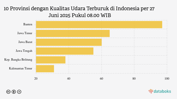 Berikut daftar 10 provinsi dengan indeks kualitas udara terburuk di Indonesia pada Jumat, 27 Juni 2025 pukul 08.00 WIB.
