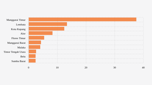 Manggarai timur adalah kabupaten di urutan pertama dengan BOR tertinggi sebesar 37,5 persen. Kondisi BOR di kabupaten ini memperlihatkan ada kemajuan dengan adanya penurunan dibandingkan pekan sebelumnya yang tercatat 37,5 persen.