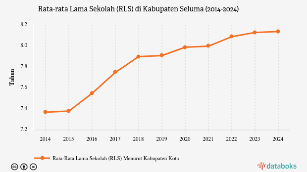 Rata-rata lama sekolah (RLS) penduduk berusia 25 tahun ke atas di Seluma, Bengkulu mencapai 8,14 tahun pada 2024.