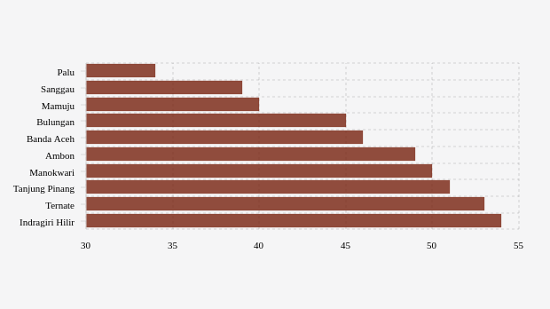 - Ternate (Maluku Utara): 53