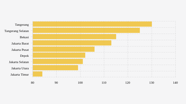Ini menunjukkan bahwa kota-kota di Jabodetabek seperti Tangerang, Tangerang Selatan, dan Bekasi memiliki kualitas udara tidak sehat.
