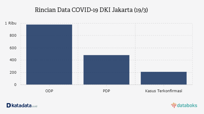 DKI Jakarta merupakan provinsi dengan temuan dan dugaan kasus positif virus corona (COVID-19) terbesar di Indonesia. Berdasarkan data yang dirilis Pemerintah Provinsi DKI Jakarta, hingga kini (19/3) terdapat 976 orang dalam pemantauan (ODP) dan 480 pasien dalam pengawasan (PDP). Sedangkan 208 kasus telah terkonfirmasi positif (COVID-19).