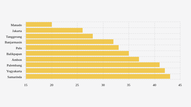 Berikut daftar lengkap 10 kota dengan kualitas udara paling bersih di Indonesia menurut KLHK pada Rabu, 6 Maret 2024 pukul 15.00 WIB.