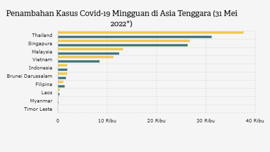 Posisi pertama ditempati Thailand, yang mengalami penambahan kasus Covid-19 sebanyak 31.154 orang dalam sepekan terakhir.