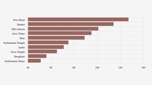 Di bawah Jawa Barat, ada Banten yang menempati posisi kedua terburuk di Indonesia dengan indeks kualitas udara 114. Kemudian, di posisi ketiga ada DKI Jakarta dengan indeks kualitas udara 101.