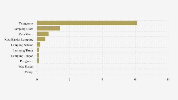 Tanggamus adalah kabupaten di urutan pertama dengan BOR tertinggi sebesar 6,12 persen. Kondisi BOR di kabupaten ini terlihat belum membaik karena terjadi peningkatan dibandingkan pekan sebelumnya yang tercatat 0,41 persen.