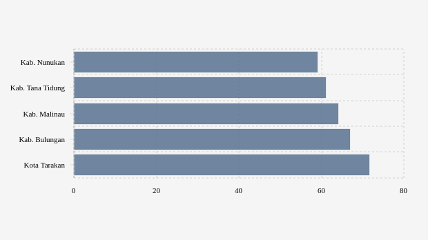 Menyusul berikutnya adalah kabupaten Tana Tidung. Untuk vaksinasi dosis 2, daerah ini masuk nomor dua terendah. Dengan sasaran vaksin sebanyak 19.371 peserta, namun telah berhasil direalisasikan 61,06 persen atau 11.828 peserta.