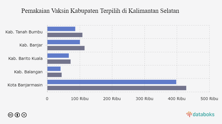 Kabupaten Tanah Bumbu di Kalimantan Selatan, telah menggunakan <a href="https://databoks.katadata.co.id/tags/vaksin">vaksin</a> sebanyak 108,67 ribu dosis vaksin per Selasa, 5 Oktober 2021.
