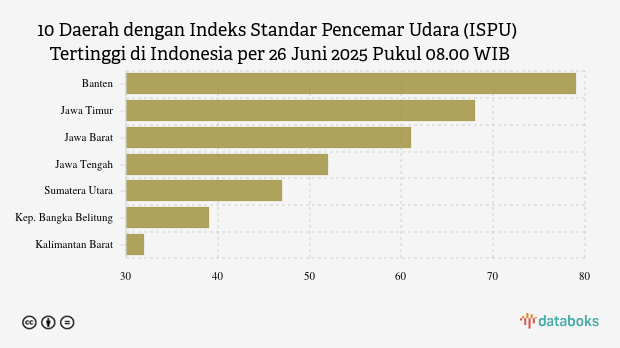 Berikut daftar 10 provinsi dengan indeks kualitas udara terburuk di Indonesia pada Kamis, 26 Juni 2025 pukul 08.00 WIB.