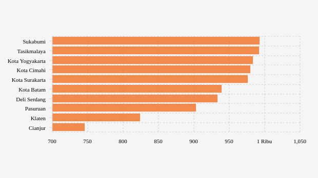 Sukabumi berada di urutan pertama. Jumlah orang diperiksa seminggu terakhir di tempat ini tercatat 993 orang per minggu. Adapun angka positive rate terakhir adalah 4,13 persen. Positive rate di wilayah ini naik dibandingkan persentase pada pekan sebelumnya.