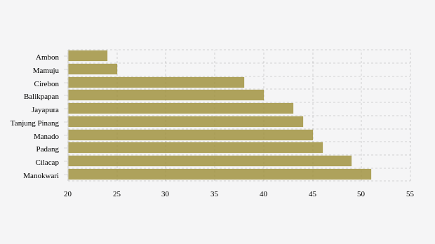 - Manokwari (Papua Barat): 51