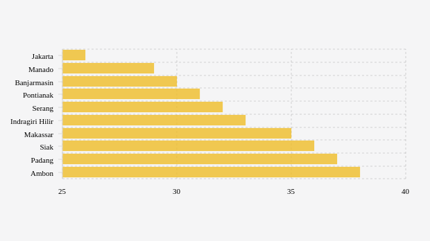 Pada waktu tersebut, kualitas udara Jakarta tergolong baik yang berarti kadar polutan di udara Jakarta sangat minim. Selanjutnya, Manado menempati posisi kedua dengan indeks kualitas udara 29. Berikutnya, ada Banjarmasin di posisi ketiga dengan indeks kualitas udara 30.