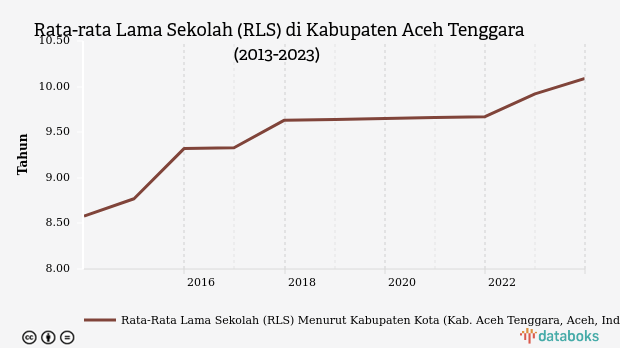 Rata-rata lama sekolah (RLS) penduduk berusia 25 tahun ke atas di Aceh Tenggara, Aceh mencapai 10,09 tahun pada 2023.