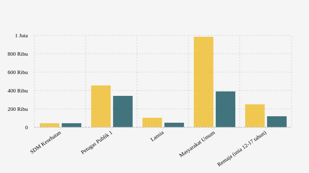 Vaksinasi ke petugas publik dengan target 402,22 ribu jiwa. Vaksinasi dosis 1 dilaporkan telah mencapai 453,83 ribu jiwa (112,83 persen target) dan dosis 2 dengan capaian 84,5 persen atau berhasil tersalurkan sebanyak 339,87 ribu jiwa.