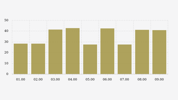 Konsentrasi PM2.5 udara Jakarta terendah berada di level 27,5 µg/m³ pada pukul 05.00 WIB, sedangkan konsentrasi PM2.5 tertinggi pada pukul 04.00 WIB dengan nilai 42,8 µg/m³.