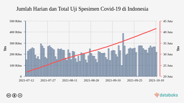 Tes Covid-19 Indonesia 219,65 ribu Spesimen per Hari (Minggu, 10 Oktober 2021)