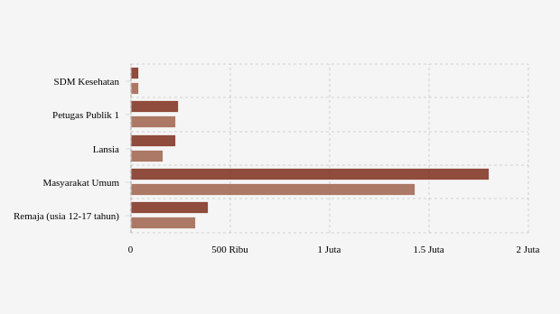 Vaksinasi ke petugas publik dengan target 319,78 ribu jiwa. Vaksinasi dosis 1 dilaporkan telah mencapai 236,49 ribu jiwa (73,96 persen target) dan dosis 2 dengan capaian 70 persen atau berhasil tersalurkan sebanyak 223,83 ribu jiwa.