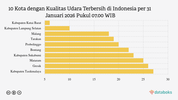 Berikut daftar 10 provinsi dengan indeks kualitas udara terburuk di Indonesia pada Sabtu, 31 Januari 2026 pukul 08.00 WIB.