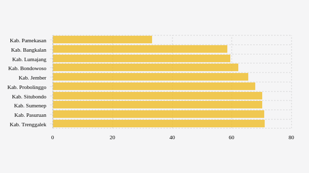 Pencapaian Vaksinasi Dosis 2 Terendah Menurut Kabupaten Terpilih di Jawa Timur
