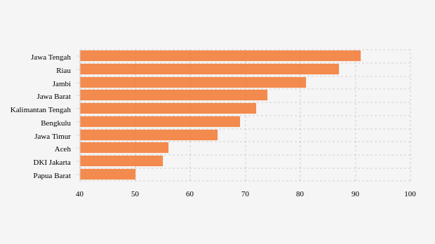 Di bawah Jawa Tengah, ada Riau yang menempati posisi kedua terburuk di Indonesia dengan indeks kualitas udara 87. Kemudian, di posisi ketiga ada Jambi dengan indeks kualitas udara 81.