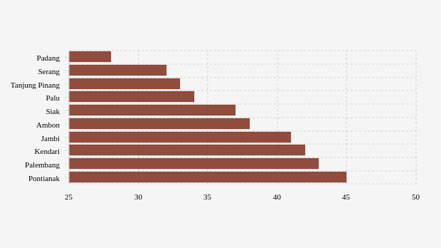 - Padang (Sumatera Barat): 28