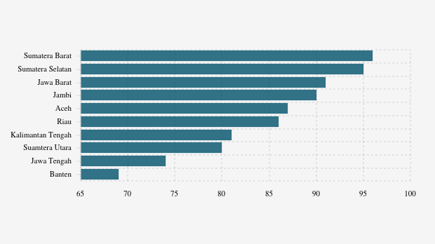 Di bawah Sumatera Barat, ada Sumatera Selatan yang menempati posisi kedua terburuk di Indonesia dengan indeks kualitas udara 95. Kemudian, di posisi ketiga ada Jawa Barat dengan indeks kualitas udara 91.