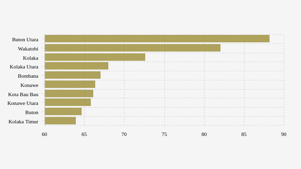 Urutan selanjutnya ditempati Wakatobi dan Kolaka yang masing-masing dengan catatan cakupan vaksinasi lengkap sesuai KTP sebesar 82,01 persen dan 72,57 persen