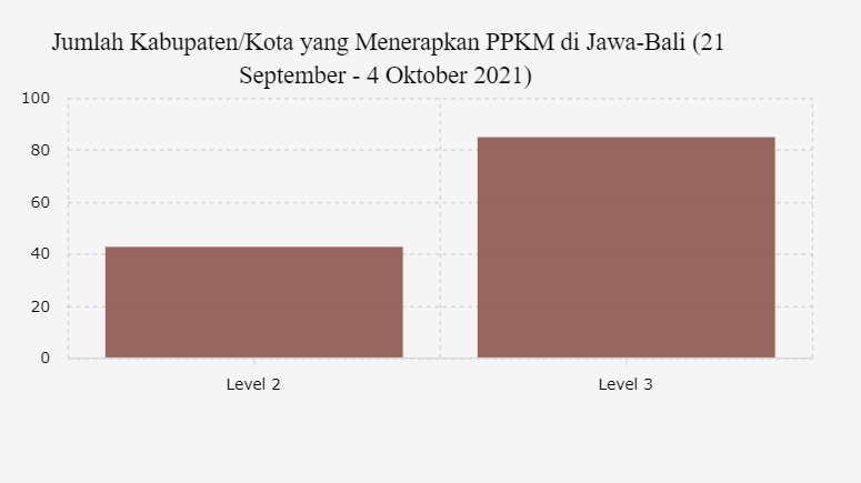 Kebijakan Pemberlakuan Pembatasan Kegiatan Masyarakat (PPKM) di Jawa-Bali kembali diperpanjang pada 21 September - 4 Oktober 2021. Berdasarkan Instruksi Menteri Dalam Negeri (Inmendagri) Nomor 43 Tahun 2021, sudah tidak ada wilayah Jawa-Bali yang berstatus level 4 pada PPKM kali ini.