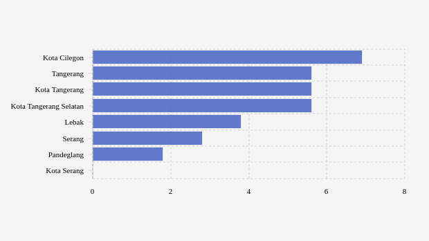 Kota cilegon berada di urutan pertama dengan BOR aglomerasi mingguan tertinggi sebesar 6,88 persen. Kondisi BOR aglomerasi mingguan di kota ini terlihat belum membaik karena terjadi peningkatan dibandingkan pekan sebelumnya yang tercatat 2,47 persen.