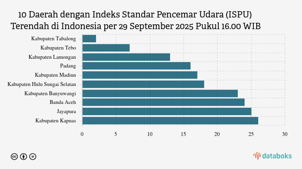 Berikut daftar lengkap 10 kota dengan kualitas udara paling bersih di Indonesia menurut KLHK pada Senin, 29 September 2025 pukul 16.00 WIB.