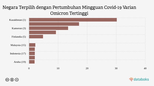 Berikutnya, penambahan kasus Omicron di Kamerun naik 13,39 persen menjadi 576 kasus dibandingkan pekan sebelumnya, penambahan kasus Omicron di Islandia naik 9,15 persen menjadi 2.004 kasus dibandingkan pekan sebelumnya dan Finlandia dengan penambahan kasus Omicron 13.697 kasus (naik 4,84%)